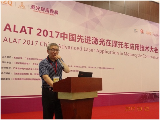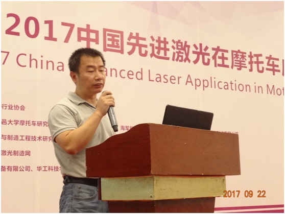江苏亚威创科源激光装备有限公司朱正强总经理就“创科源三维激光切焊助力摩托车行业”作演讲报告