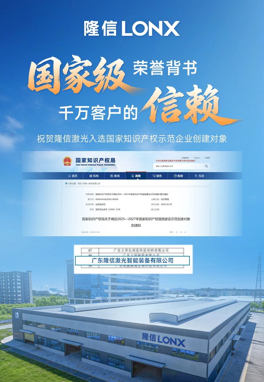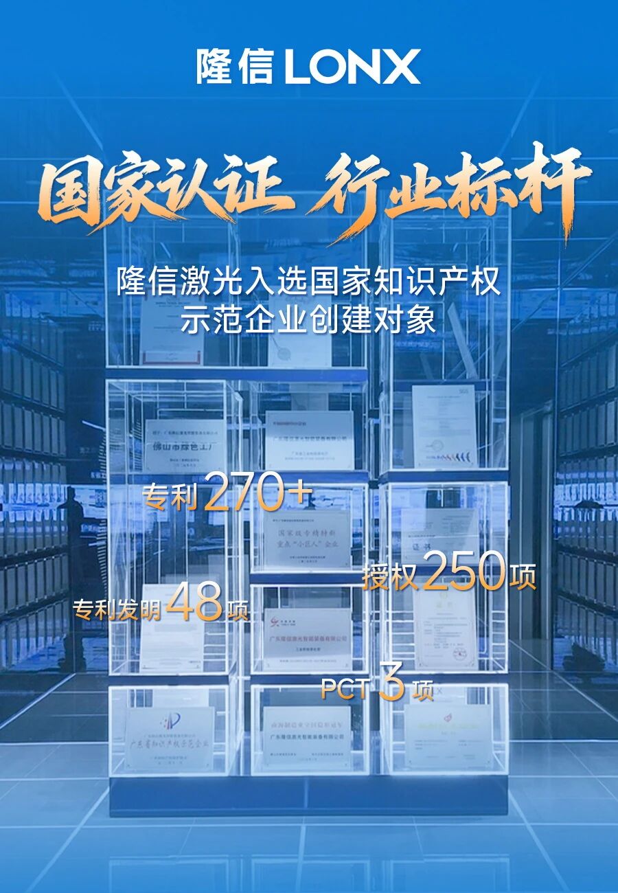 隆信激光多年来坚持自主创新,入选国家知识产权示范企业创建对象,是对其长期投入的肯定,更是新征程的起点。未来,隆信将继续以知识产权为核心竞争力,为用户提供更高性能、更稳定可靠、更智能的激光智能装备与生产解决方案。